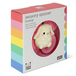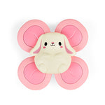 Diseñado para fomentar la motricidad fina y el juego sensorial y aprendizaje causa-efecto, este precioso conejito de juguete cuenta con un elemento giratorio de cuatro paletas para deleitar a los pequeños.