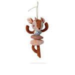 Al tirarle de las patas, este sonajero comienza a bailar alegremente.