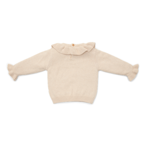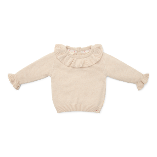 Volantes en los extremos de las mangas y volantes a lo largo del escote