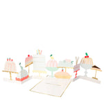 Esta deliciosa tarjeta es perfecta para felicitar a alguien que ama los postres. Con un diseño y una elaboración exquisitos, se despliega para revelar deliciosos pasteles, adornados con bonitos pompones, hilo dorado y detalles brillantes en papel metálico. Con la frase "Have Your Cake And Eat It Too", perfecta para celebrar un cumpleaños inolvidable.