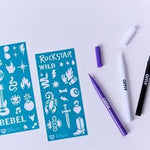 Contiene 3 Rotuladores (NEGRO-BLANCO-LILA) + 35 Plantillas para tatuarse.
