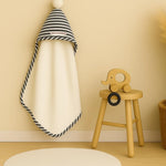 Toalla de suave rizo 100% algodón decorada con un pompón, para el baño de los más pequeños, la piscina o la playa.