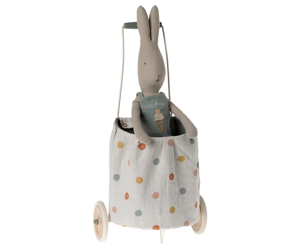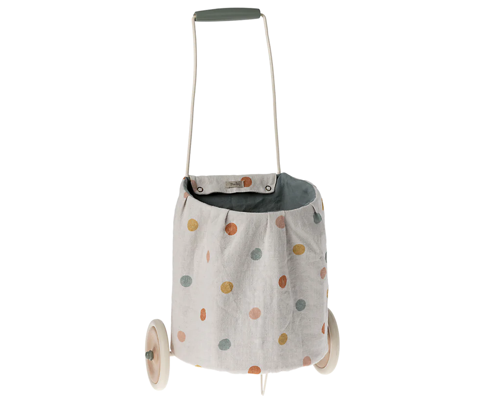 Es necesario un carrito para transportar a todos tus amigos de peluche y juguetes. El carrito está recubierto de una tela natural que tiene una capa suave que ayudará a mantener la tela limpia. La parte de tela es fácil de quitar y lavar.