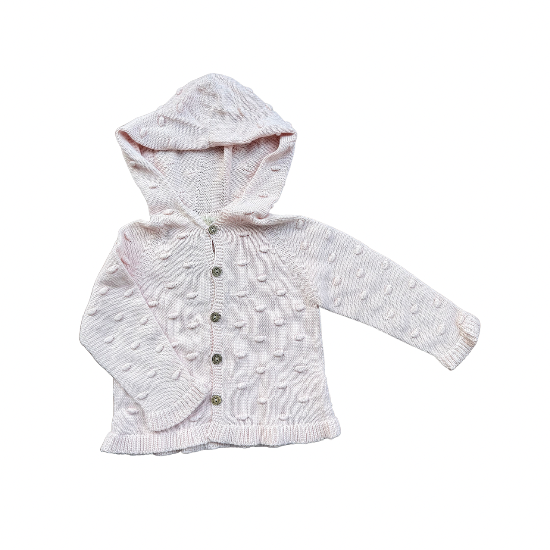Chaqueta de manga larga en un bonito y suave algodón, ideal para bebés niños y niñas. Se abrocha en la parte delantera con botones de coco. Una sola pieza sin costuras, para el máximo confort de tu bebé.