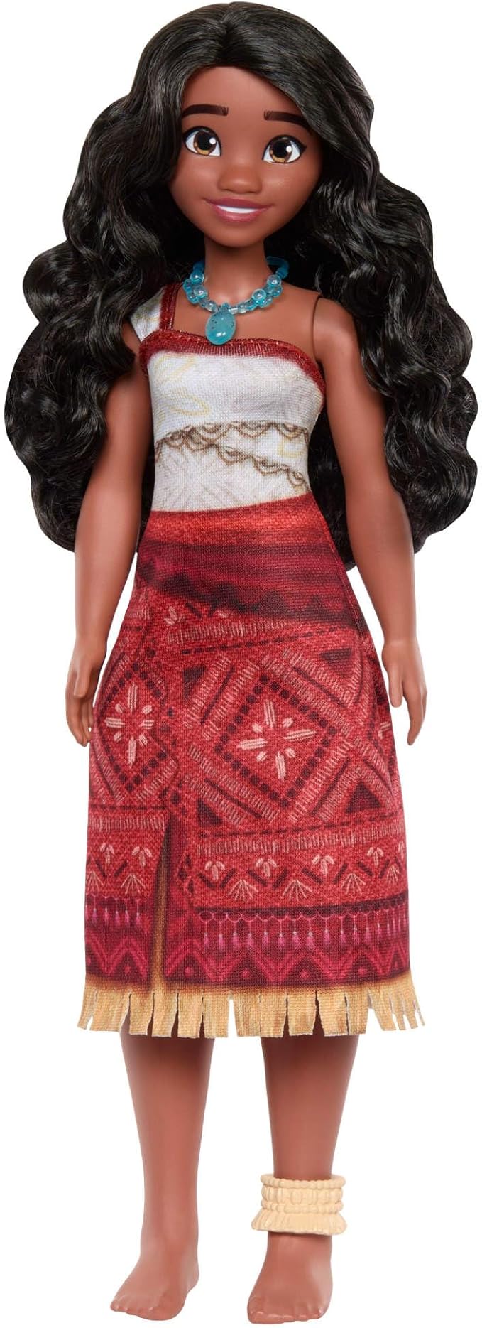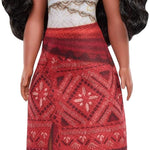 La muñeca Vaiana lleva un top y una falda de quita y pon fieles a la película, para viajes largos y legendarios.