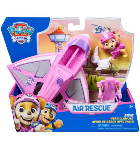 Vuela en busca de aventuras con Skye, de Air Rescue, y su avión de rescate de incendios Hero Claw. Cuando llegue el momento de llevar a cabo un rescate lleno de acción, coloca las patas de Skye en posición en la cabina de mando antes de despegar hacia tu misión. Salva al conejito pulsando un botón del avión para extender el gancho, coloca al conejito en la cesta de rescate y ponlo a salvo. Skye mide más de 5 cm y va equipada con su chaqueta y casco rosas de Air Rescue. Si quieres ampliar aún más las posibilidades de juego, hazte con Chase y su helicóptero Hero Helicopter, y con Marshall y su avión Hero Hydro Plane para formar el equipo de rescate definitivo. Los juguetes de aprendizaje de PAW Patrol para preescolares y niños pequeños son un gran regalo para niños a los que les gusta dejar volar la imaginación mientras desarrollan la motricidad fina.