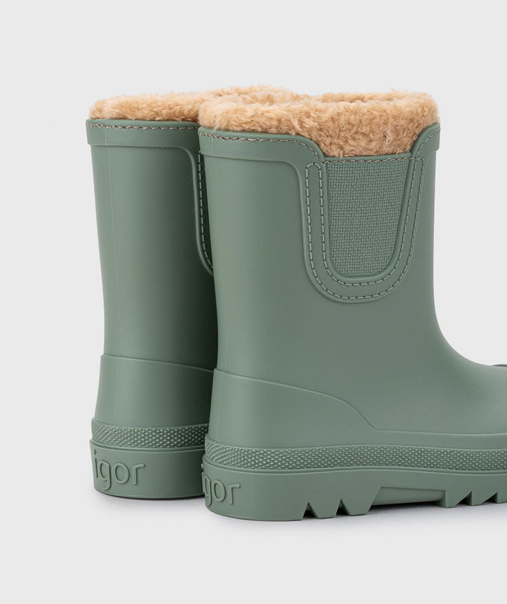 Botín de agua monocolor en acabado mate y forro de borreguito de concepto barefoot wide, con la puntera más ancha, cero drop, flexible, blandito y con plantilla extraíble.