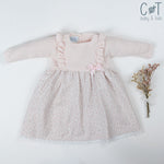 Vestido con tela de Flores Rosas y Punto Rosa.