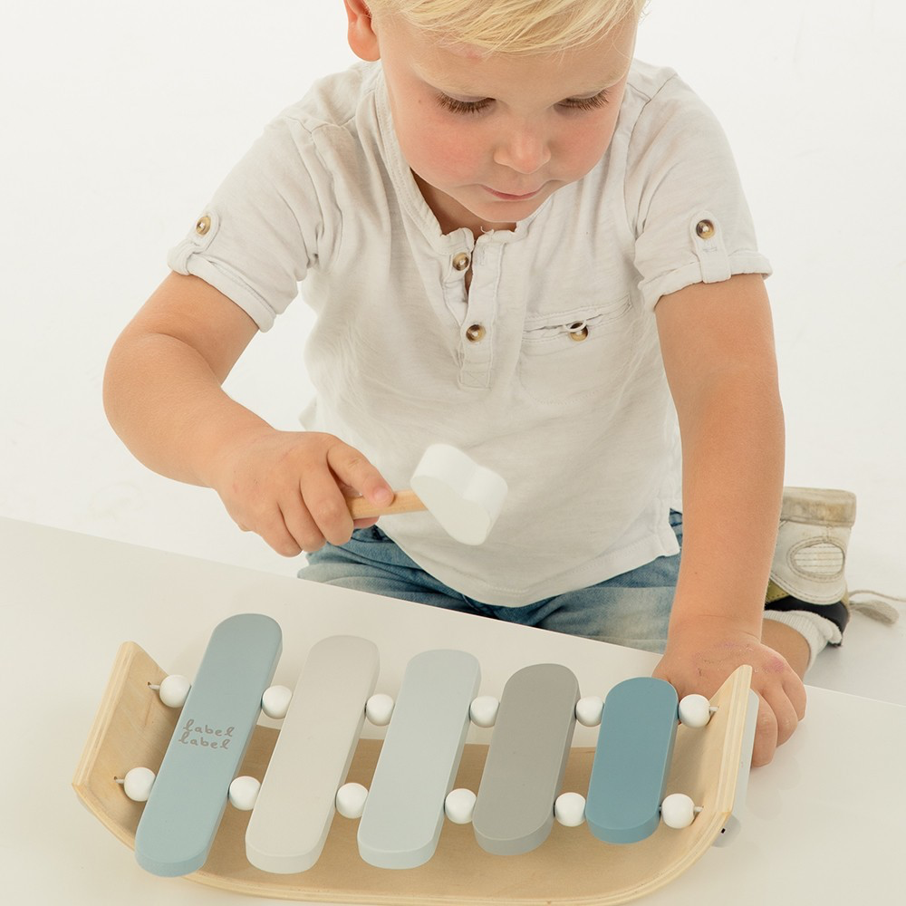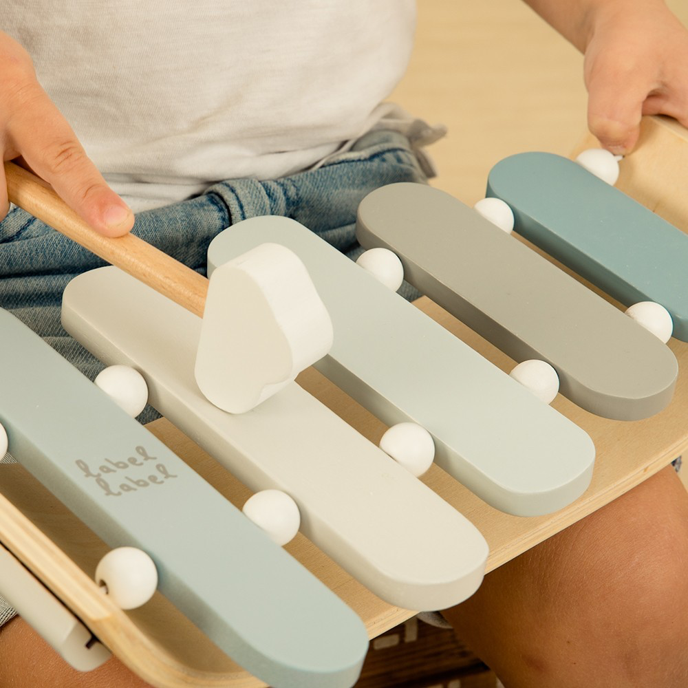 Este maravilloso Xilófono de madera en estilo Label Label está diseñado para los pequeños músicos. El xilófono está fabricado con madera certificada FSC de alta calidad y provisto de bonitos tonos con pintura al agua apta para niños. El precioso xilófono con forma viene con una baqueta a juego, con la que tu pequeño músico podrá desarrollar su talento musical, mezclar sonidos y ritmos... ¡Podría ser el comienzo de un famoso compositor!