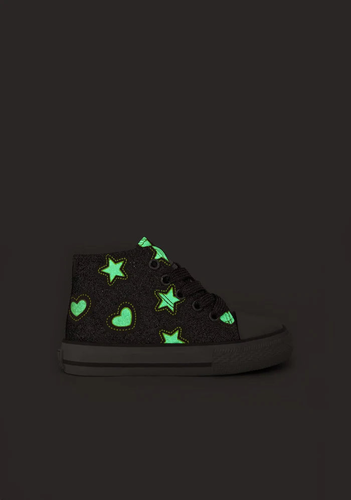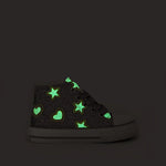 Lo más divertido de estas zapatillas son las estrellas que brillan en la oscuridad. Así que, cuando se apagan las luces, el diseño estrellado en los zapatos se ilumina, ¡haciendo que cada paso sea aún más brillante!