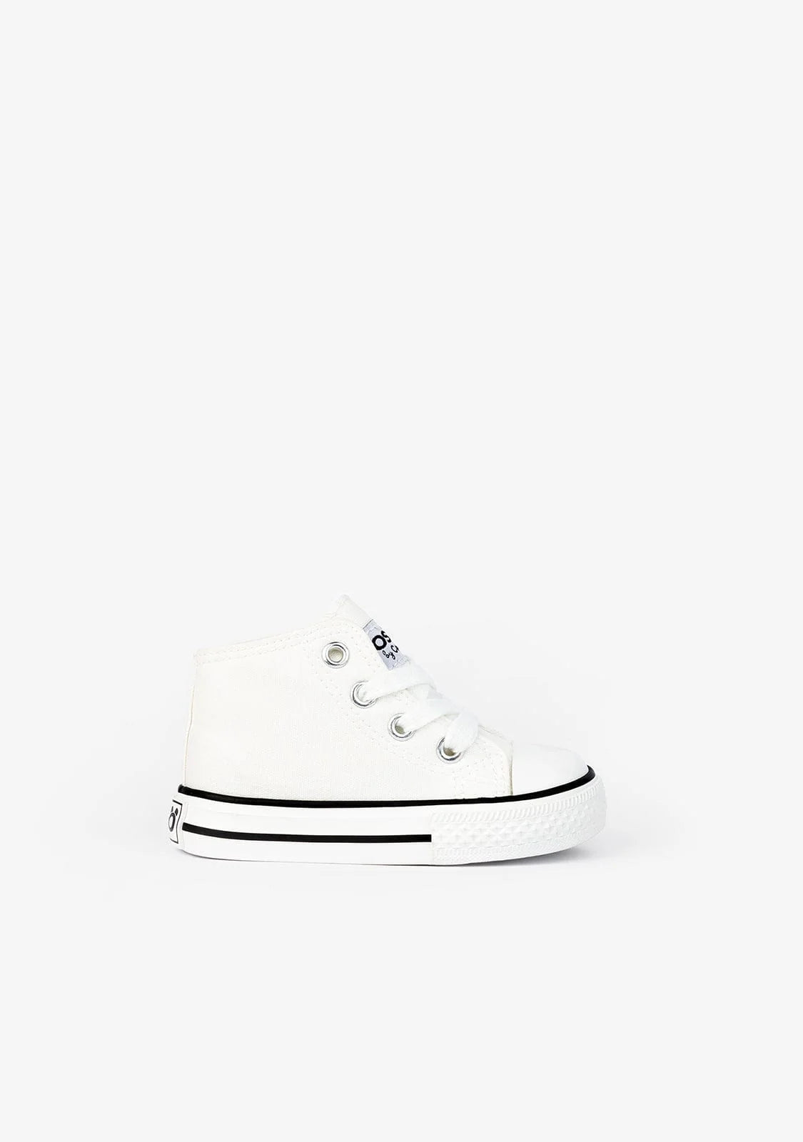 Las nuevas zapatillas altas con cordones de color blanco fabricadas con material de lona. Tiene detalle cremallera en el lateral de la bota. Además, tienen una suela de goma que garantiza la flexibilidad y una puntera reforzada para una mayor protección de los dedos.