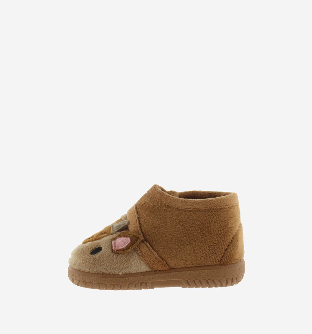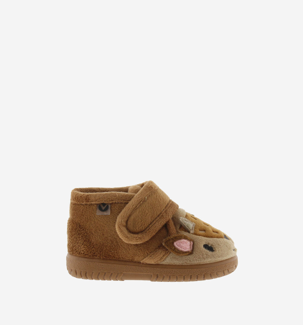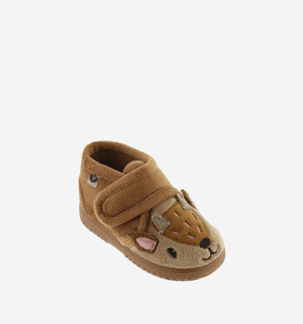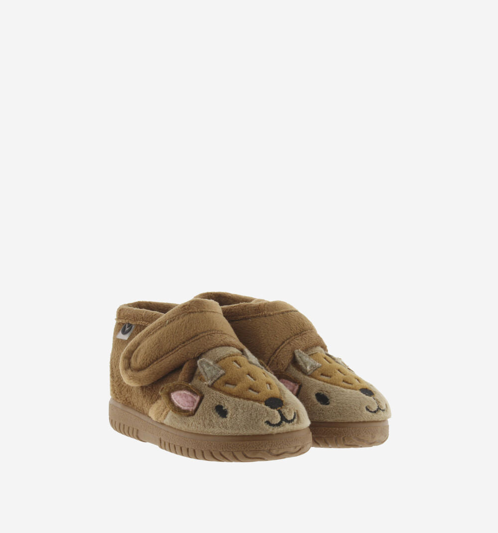 Zapatillas de casa con motivos de animales para niños. Fabricadas en España en pelito corto muy suave y agradable. Cierre mediante tira adherente que facilita el calce y la autonomía. Disponibles en muchos animalitos diferentes para elegir.