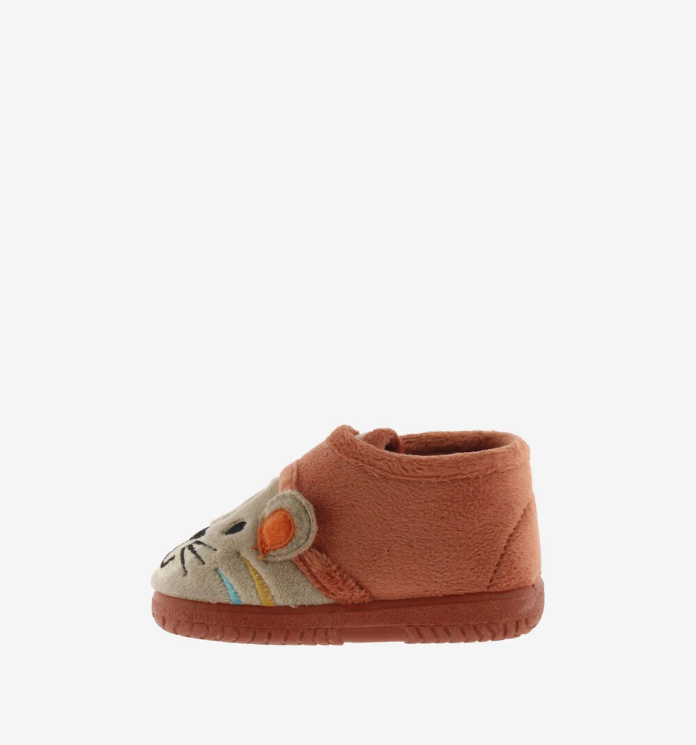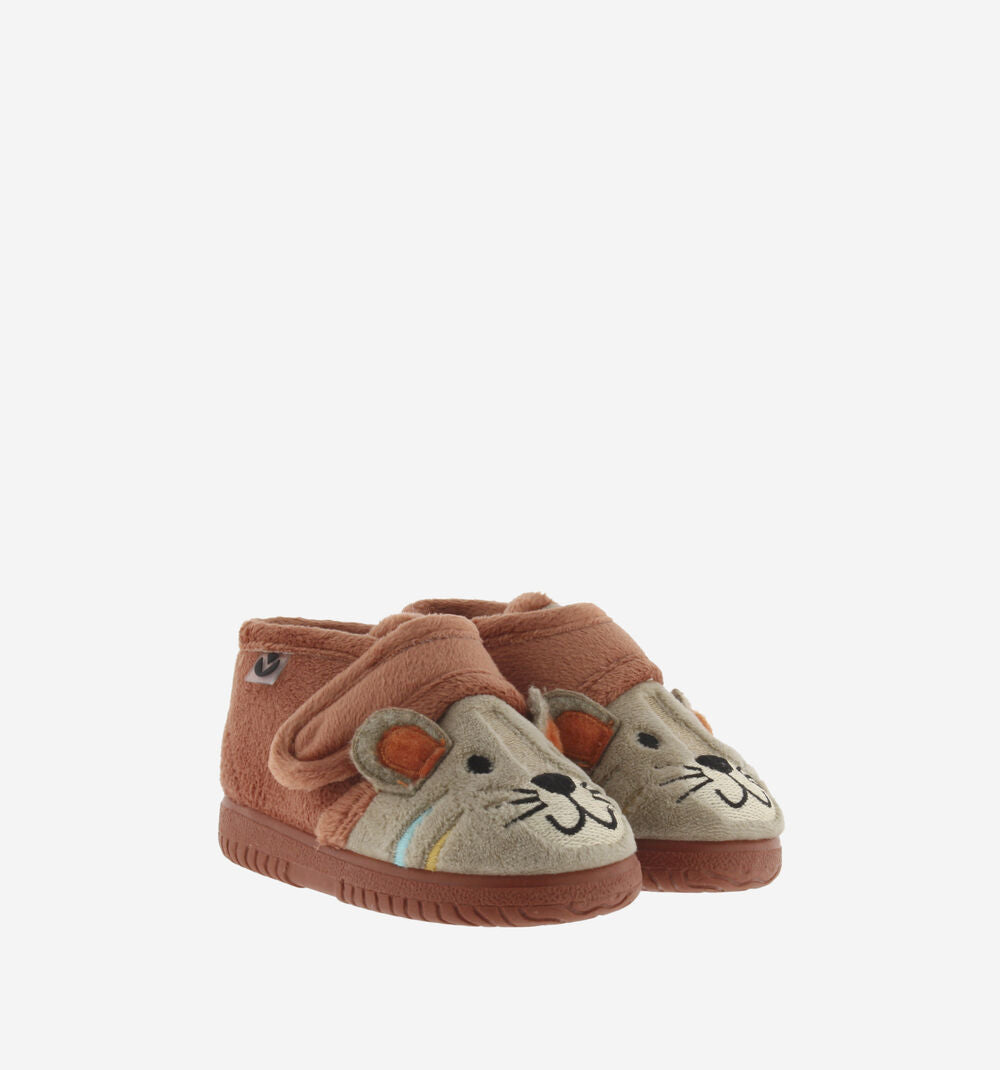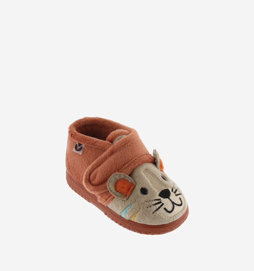 Zapatillas de casa con motivos de animales para niños. Fabricadas en España en pelito corto muy suave y agradable. Cierre mediante tira adherente que facilita el calce y la autonomía. Disponibles en muchos animalitos diferentes para elegir.