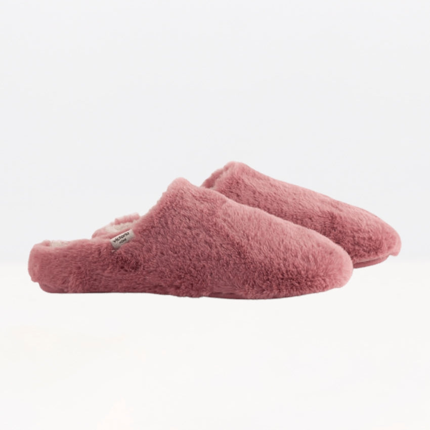 Zapatillas de casa para mujer destalonadas. Fabricadas en España en pelo corto muy suave. Cómoda suela de caucho natural 100%. Incluyen plantilla extraíble de tejido tipo borreguito que aporta calidez y confort.