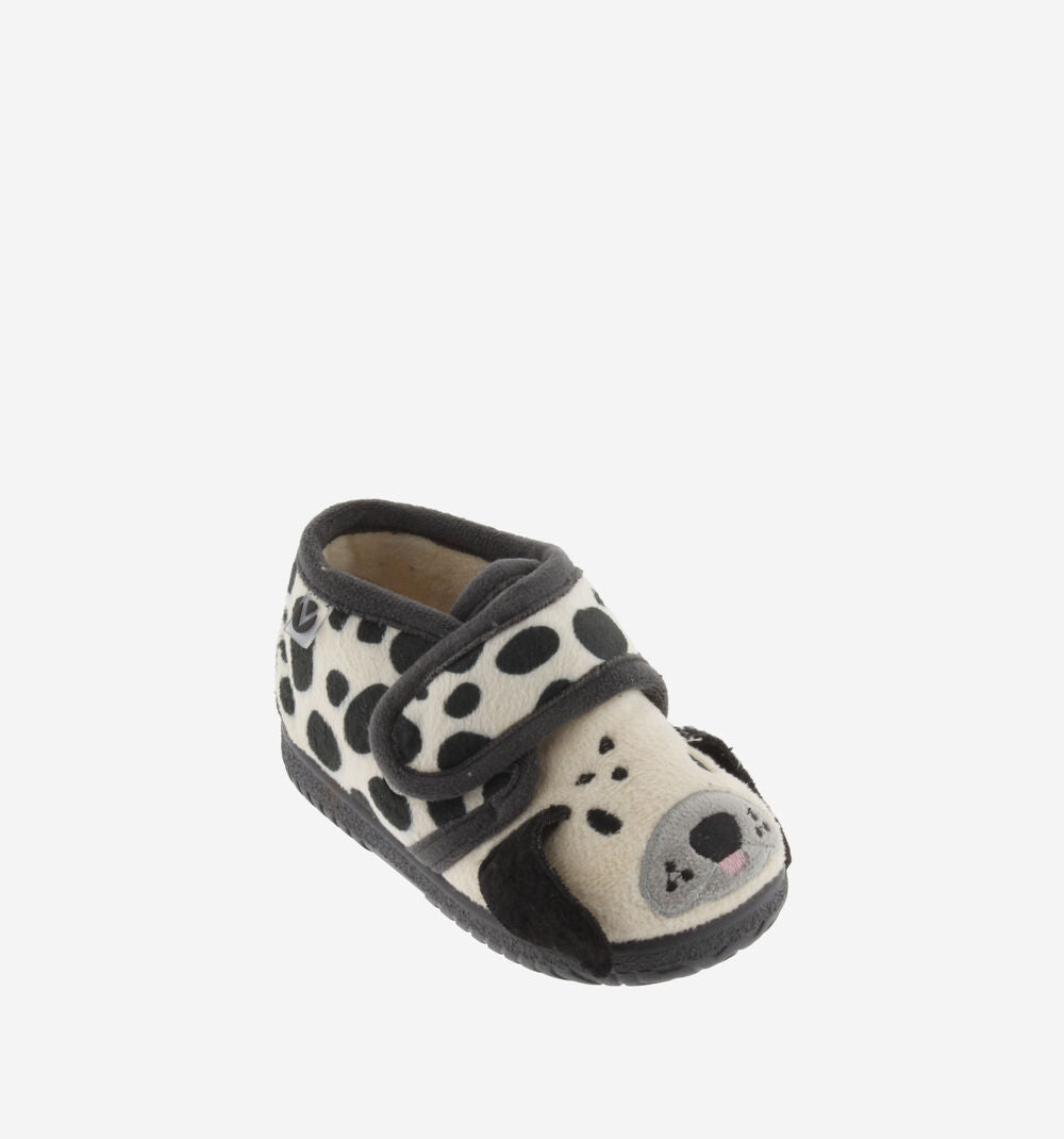 Zapatillas de casa con motivos de animales para niños. Fabricadas en España en pelito corto muy suave y agradable. Cierre mediante tira adherente que facilita el calce y la autonomía. Disponibles en muchos animalitos diferentes para elegir.