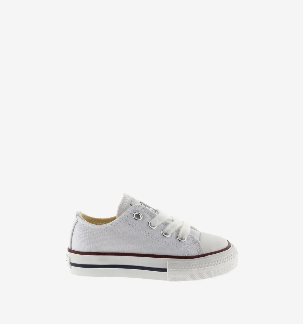Zapatillas de lona blancas con cordones ligeras y atemporales. Cierre mediante cordones en blanco y etiqueta en la lengüeta. Suela de 2,5 cm y refuerzo en la puntera que las hace más resistentes y duraderas. Llevan plantilla de alta densidad para un mayor confort.